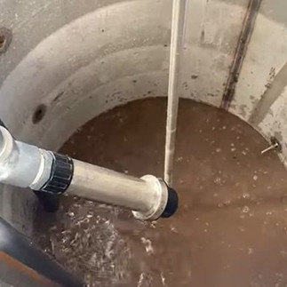 Submerged feed pump and collection/storage tank of untreated livestock wastewater.